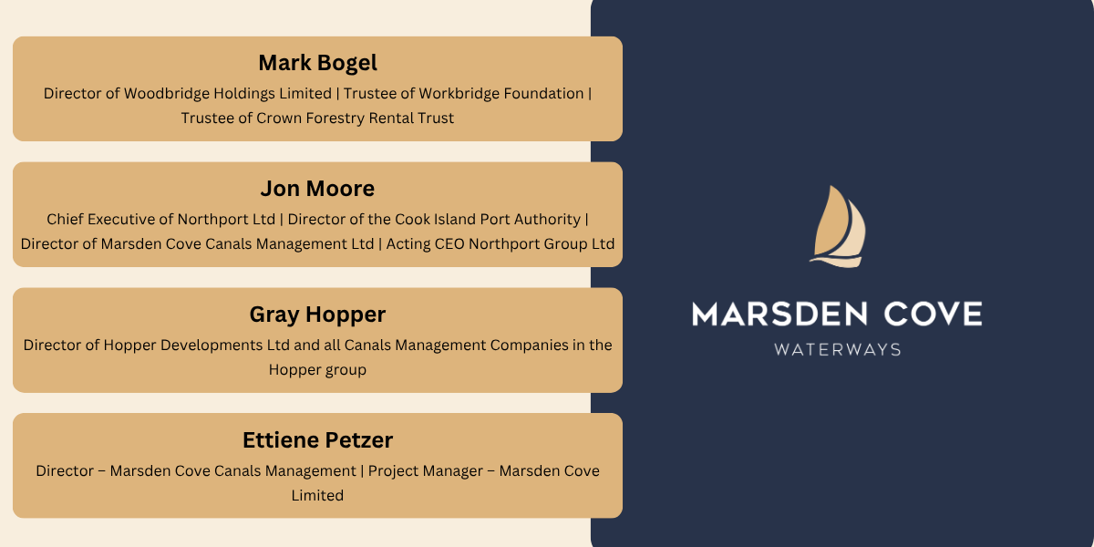 Marsden Cove Canals Management is guided by equal representation of two key stakeholders: Marsden Cove Waterways and Marsden Maritime Holdings.