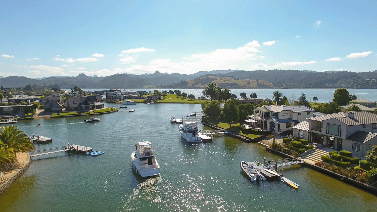 A vessel within the canals must fit into their allocated mooring envelopes to be compliant. It is recommended that vessels fit 1 meter within their mooring envelope on all sides. This ensures the safest access to your pontoon regardless of your vessel size, moveability or operator experience. This also ensures the waterway between your vessel and the neighbouring vessels is not encroached on in any way. Crossing your neighbours mooring envelope to moor your vessel on your pontoon is not recommended without your neighbours’ permission.